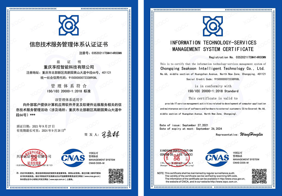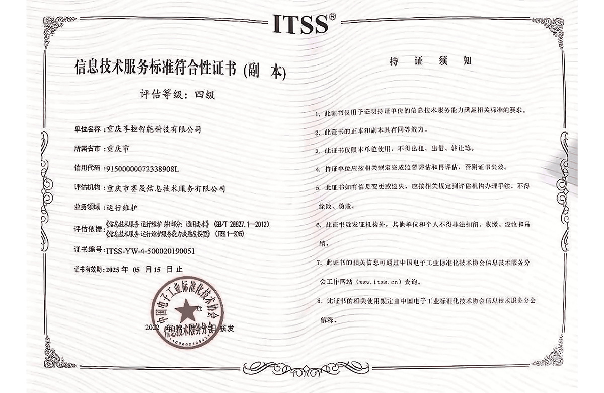 獲信息技術(shù)運行維護標(biāo)準(zhǔn)符合性證書
